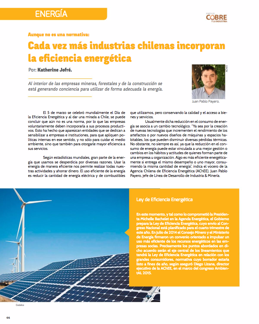 Al interior de las empresas mineras, forestales y de la construcción se está generando conciencia para utilizar de forma adecuada la energía.