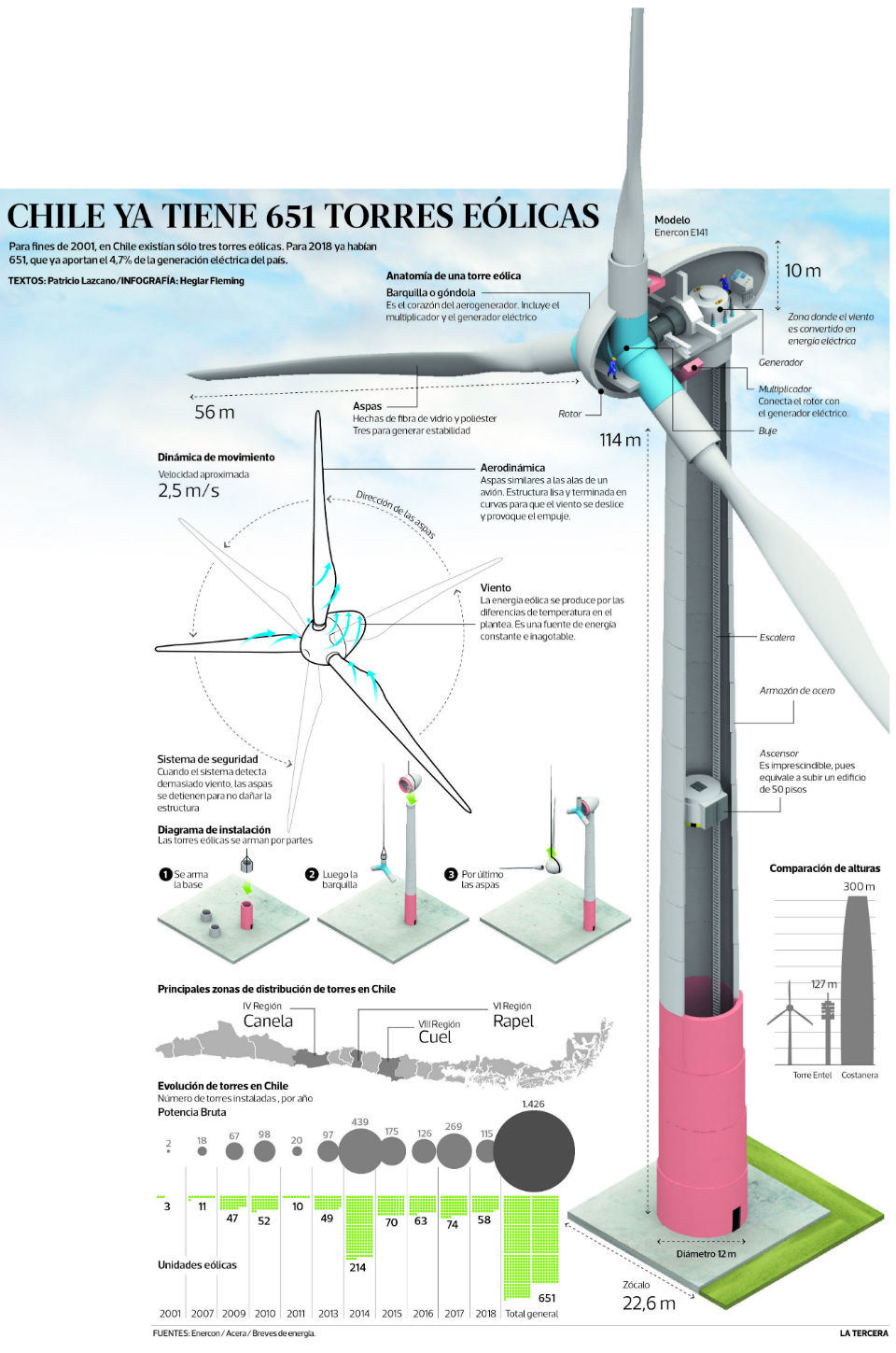 Desde entonces ya se han instalado 651 de estas torres, las que combinadamente generan 1.426 MW de energía al país.