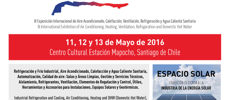 La tercera versión de Expo Frío Calor Chile se realizará entre el 11 y el 13 de mayo en Estación Mapocho y es la vitrina para conocer las tendencias en materia de aire acondicionado, climatización, calefacción, ventilación y refrigeración, que nuevamente cuenta con la participación de empresas extranjeras provenientes, esta vez, de Argentina, Brasil, China y México, que mostrarán la vanguardia en productos y servicios.