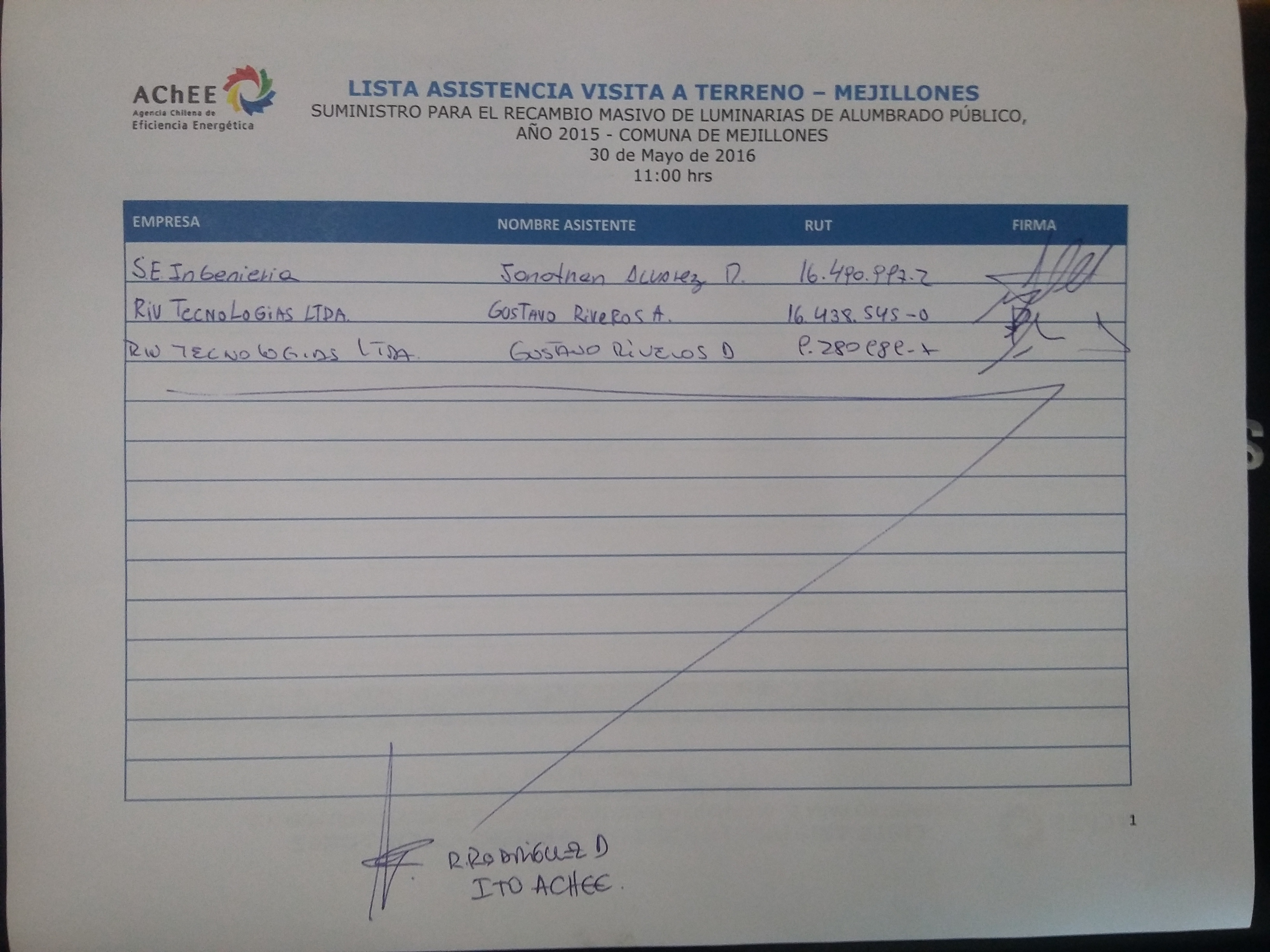 Con el fin de obtener mayor detalle de las instalaciones y equipos a ser instalados, se podrá efectuar una visita técnica en la Comuna de Mejillones. Esta visita se efectuará el día lunes 30 de mayo próximo a las 11:00 horas saliendo desde las Ilustre Municipalidad de Mejillones. La espera máxima de los interesados será de 10 minutos y las inscripciones se realizarán al inicio de la visita.