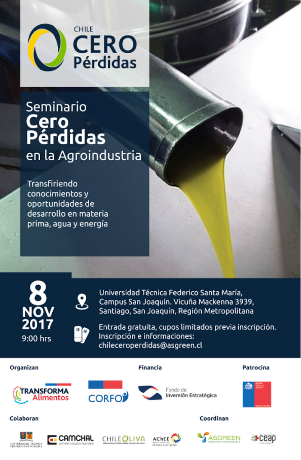 Y justamente para enfrentar el desafío de la valorización y aprovechamiento de subproductos, mostrando qué se está haciendo en Chile y el mundo en esta materia, el 08 de noviembre se realizará el Seminario Cero Pérdidas en la Agroindustria. En esta instancia se dará a conocer el la innovación y el desarrollo aplicado para la obtención de productos de mayor valor, y las ponencias estarán a cargo expositores nacionales e internacionales de basta experiencia y éxito en la aplicación de la valorización de subproductos, además de los resultados del diagnóstico.
