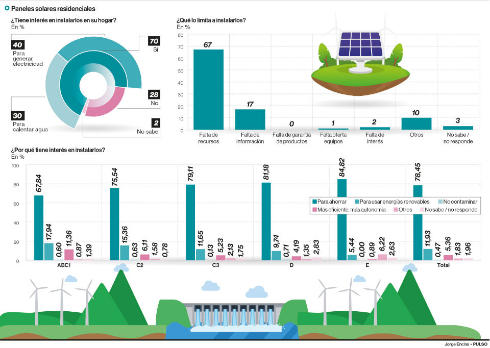 El informe, que incluye 3.500 encuestas de forma representativa por zona, edad, género y nivel socioeconómico, dedica un importante espacio a las energías renovables no convencionales (ERNC) y a la eficiencia energética (EE).