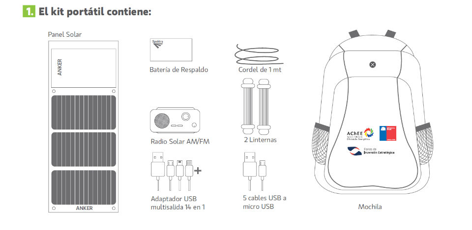 Este concurso es realizado por la Agencia Chilena de Eficiencia Energética en conjunto con la División de Desarrollo Sustentable del Ministerio de Energía con recursos provenientes del Fondo de Inversión Estratégica del Ministerio de Economía. Consiste en el cofinanciamiento de un kit solar portátil, el cual busca entregar acceso a la energía a la población que dada las condiciones de sus labores productivas no cuenta con electricidad en parte importante del día, permitiendo de este modo mejorar sus condiciones de vida, comunicación e información de estas personas.