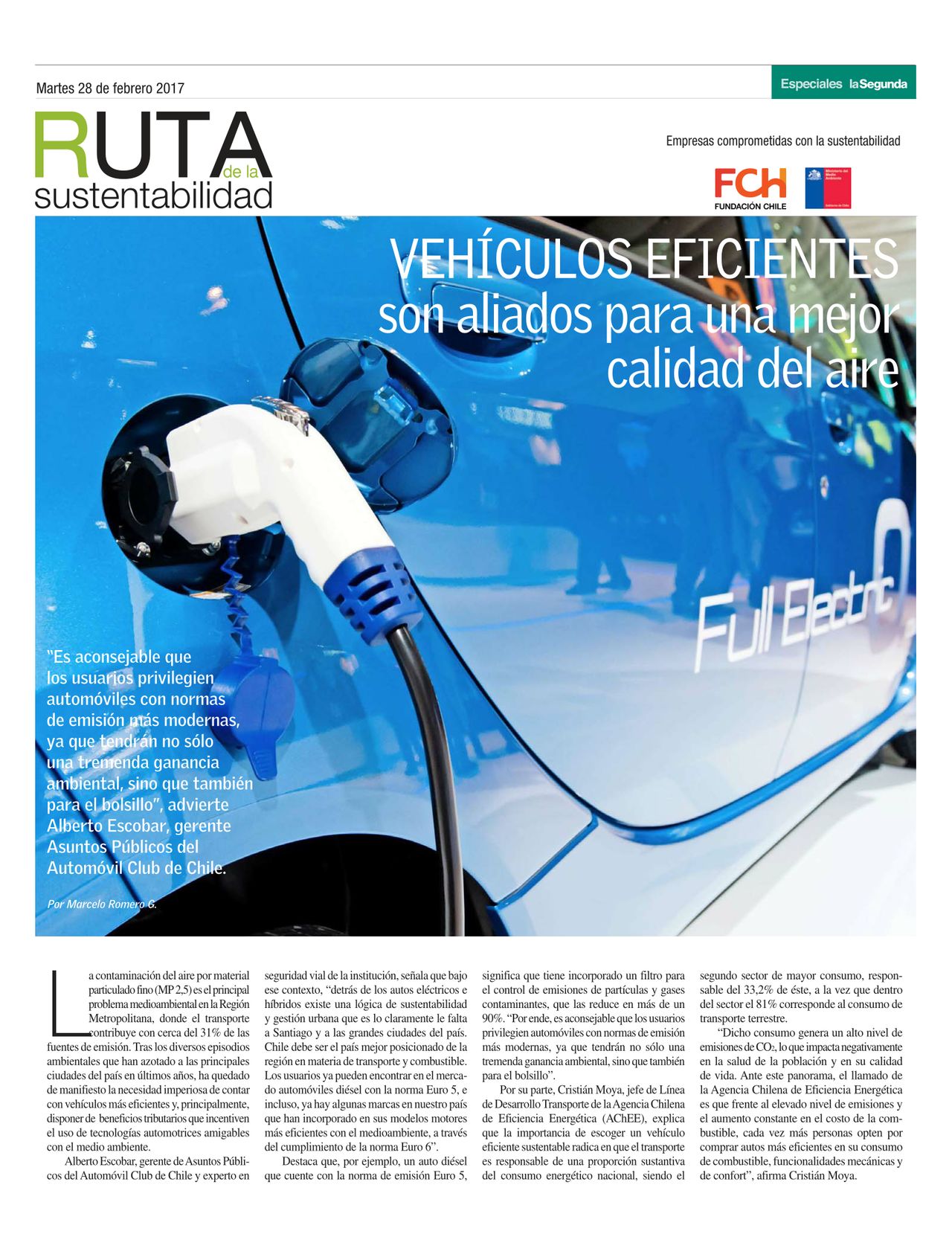 Cristián Moya, jefe de Línea de Desarrollo Transporte de la Agencia Chilena de Eficiencia Energética (AChEE), explica que la importancia de escoger un vehículo eficiente sustentable radica en que el transporte es responsable de una proporción sustantiva del consumo energético nacional, siendo el segundo sector de mayor consumo, responsable del 33,2% de éste, a la vez que dentro del sector el 81% corresponde al consumo de transporte terrestre.
